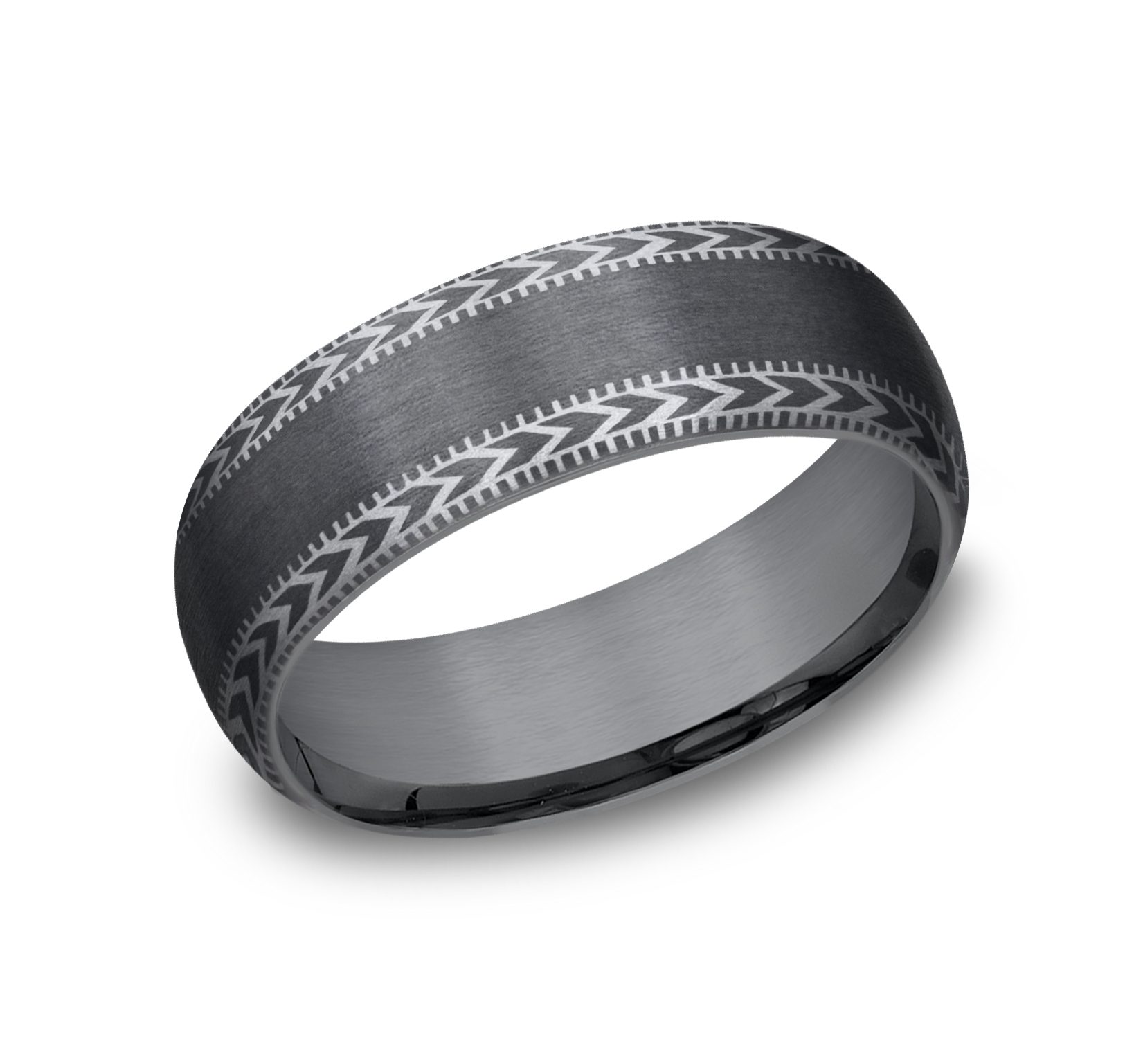 8mm, Comfort fit Darkened Tantalum Satin center with wheat patterned and milgrain detailed edges