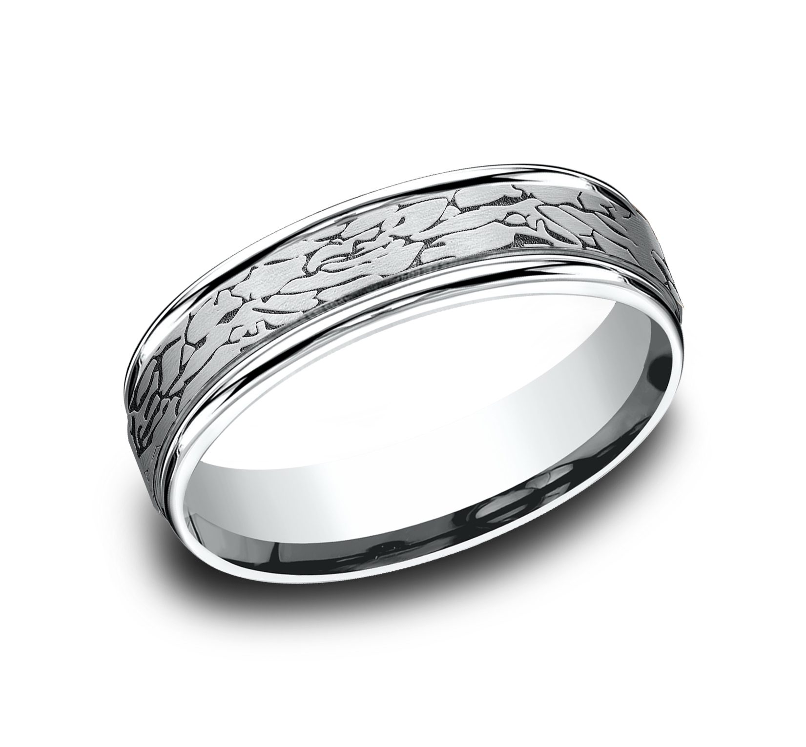 6mm, Comfort fit 14K White Gold Fractured rock pattern, polished round edges