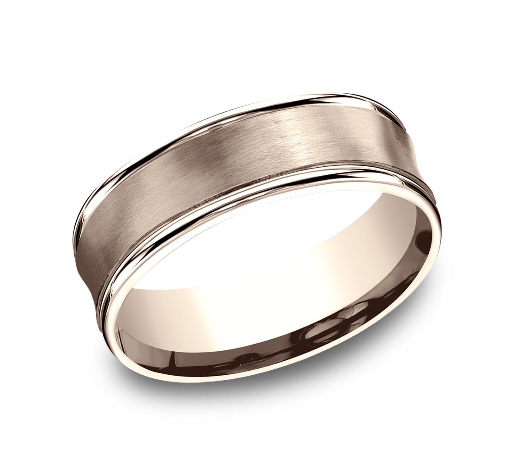7.5mm, Comfort fit 14K Rose Gold Satin finished concave center, polished round edges