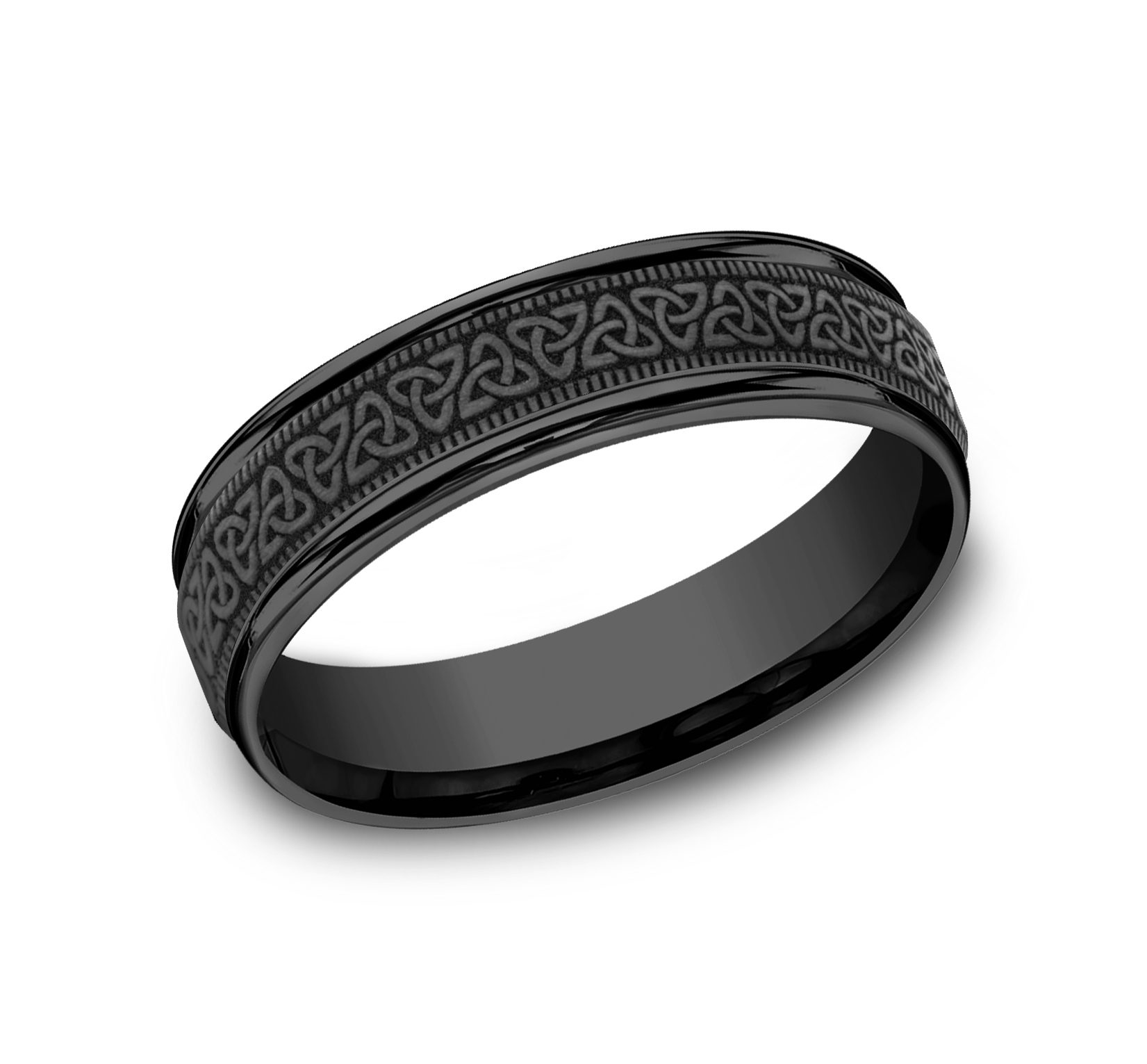 Celtic knot pattern, milgrain detailing, polished round edges