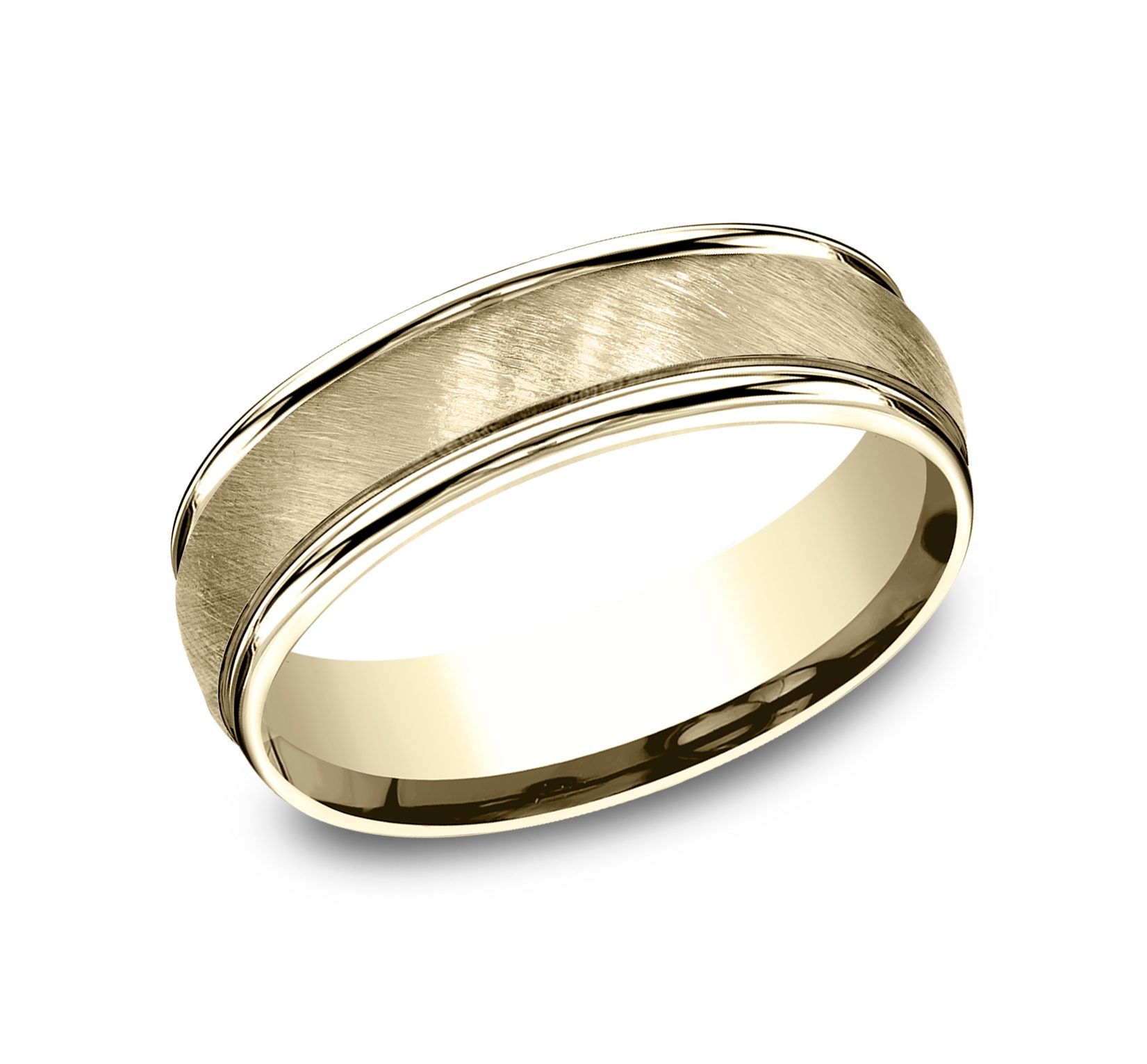 6.5mm, Lightweight comfort fit 14K Yellow Gold Diagonal satin finish, polished round edges