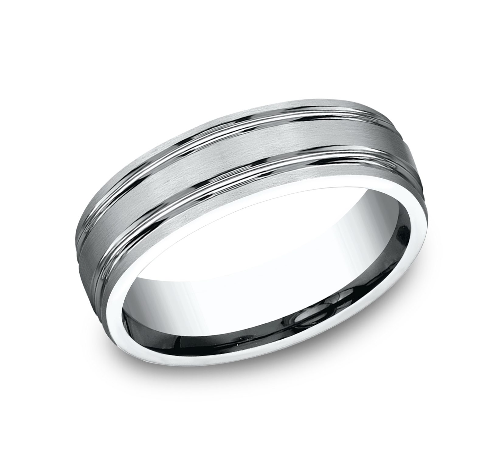 6.5mm, Lightweight comfort fit 14K White Gold Satin finish, double polished center cuts