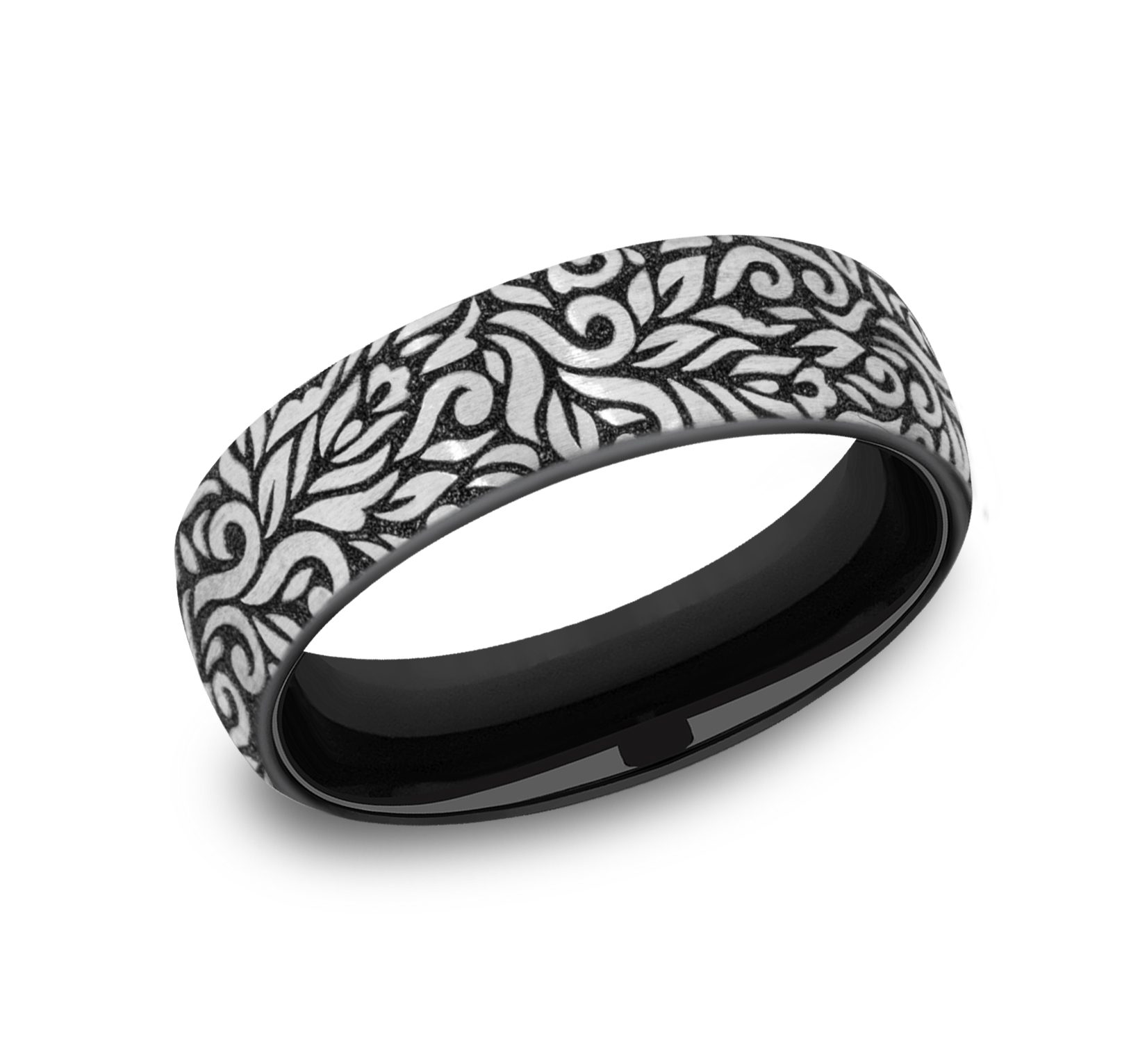 6.5mm, European comfort fit Grey and Black Titanium Paisley pattern