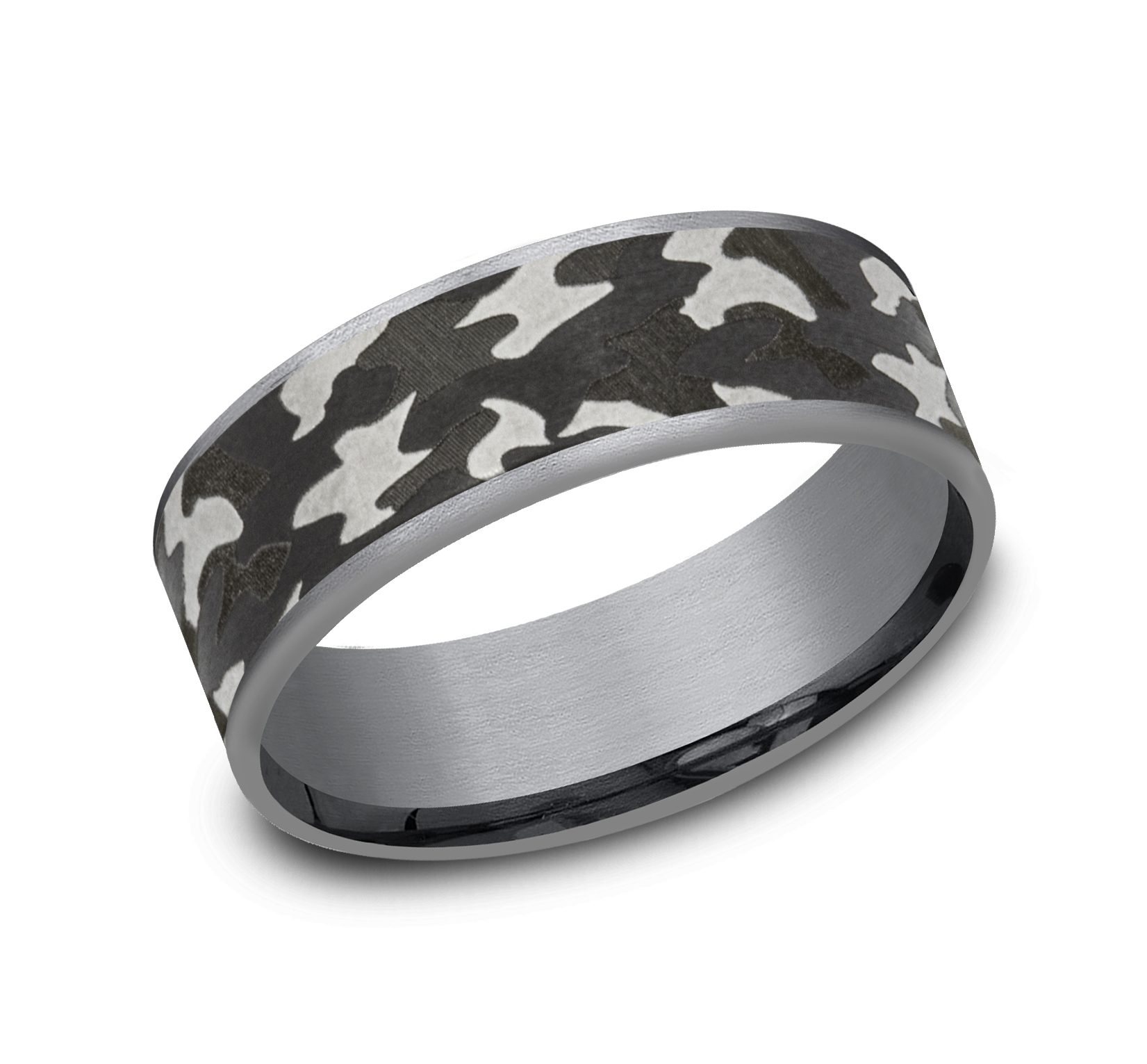 7.5mm, Comfort fit Grey and Darkened Tantalum Camouflage patterned center, thin edges