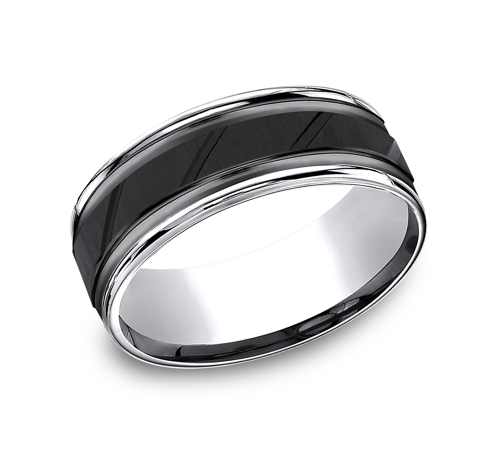 8mm, Comfort fit Black and White Cobalt Diagonal cut center, polished round edges