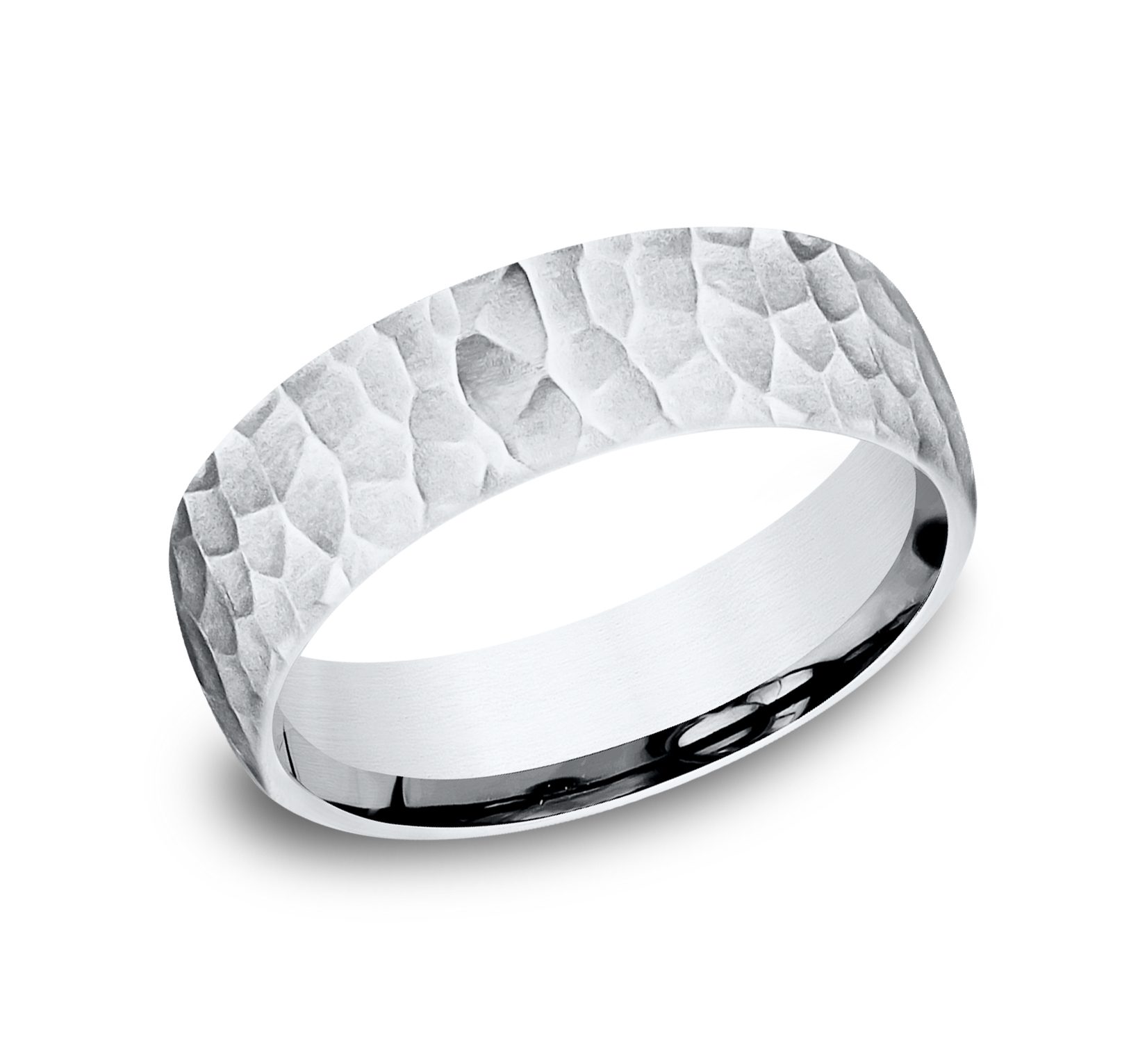 6.5mm, Comfort fit 14K White Gold Hammered finish