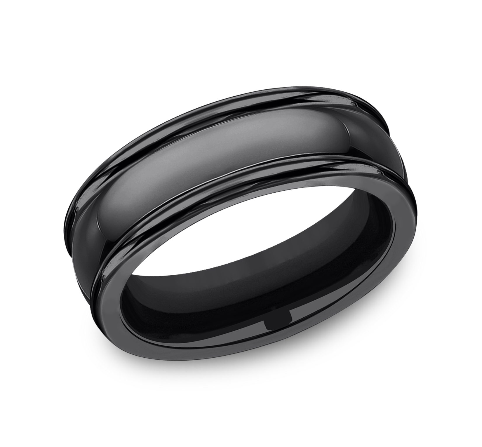 7.5mm, Comfort fit Black Titanium High polished finish, bold round edges